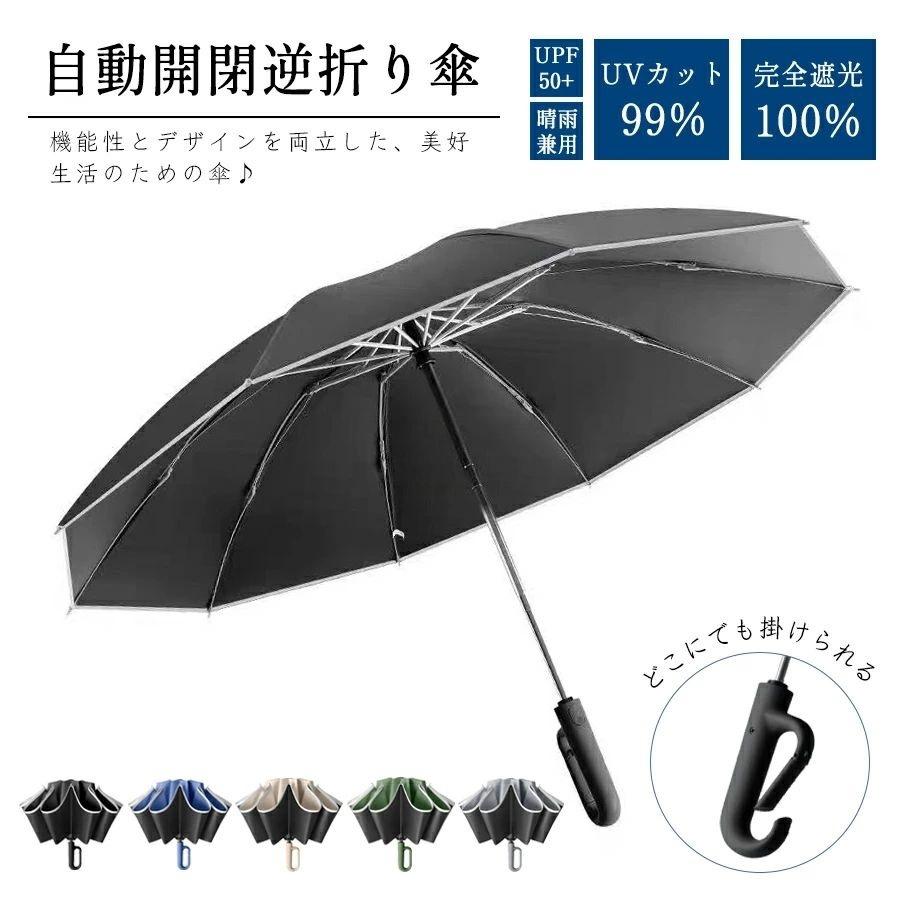 自動傘 折りたたみ傘 逆さ傘 メンズ レディース 日傘 晴雨傘 自動開閉 10本骨 強風対策 大きいサイズ コンパクト 丈夫 超撥水 UVカット 遮熱遮光 雨具