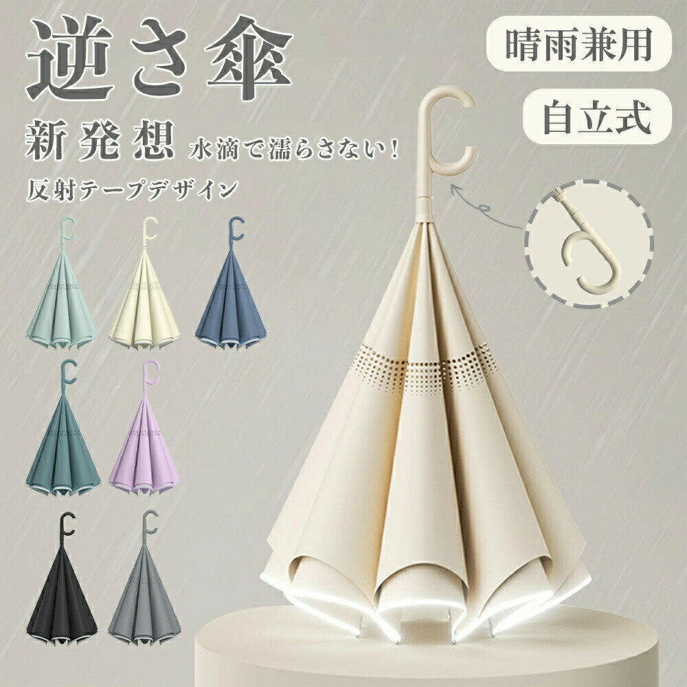 新発想!逆さにとじて濡らさない!傘布2層構造 強風に強く 耐久性抜群 超撥水加工 親骨が隠れて、反射テープ付きで 夜道でも安心 両手を解放するC字型ハンドル 髪の毛も挟まらない!