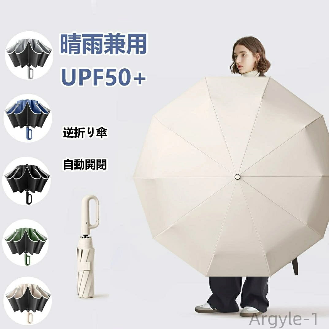 折りたたみ傘 逆さ傘 自動開閉 晴雨兼用カラビナハンドル 折り畳み傘 軽い UVカットUPF50 紫外線遮断 メンズ レディース 軽量 大きめ ワンタッチ 母の日