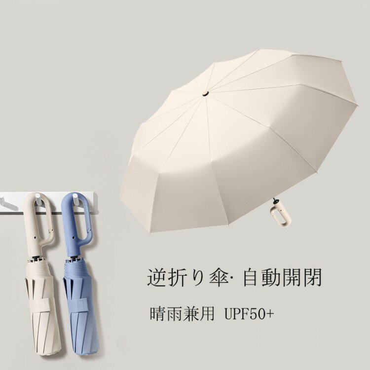 自動開閉 折りたたみ 傘 逆さ カラビナハンドルつき 逆折りタイプ 収納やすい ドア 鞄 ベビーカーに掛ける ママグッズ