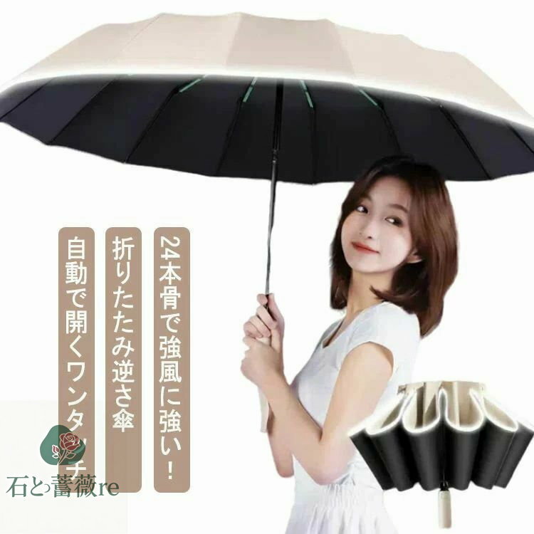 24本骨 強風 逆さ傘 折りたたみ ワンタッチ 自動開閉 晴雨兼用