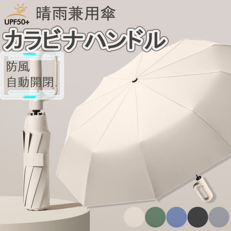 自動開閉逆さ傘晴雨兼用カラビナハンドル折り畳み傘軽いUVカットUPF50紫外線遮断メンズレディース軽量大きめワンタッチ