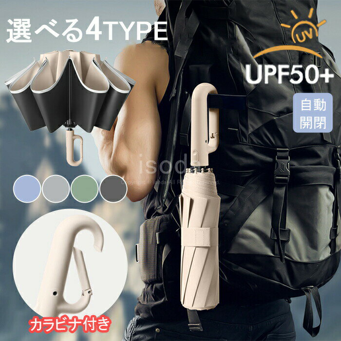 逆さ傘 自動開閉 晴雨兼用カラビナハンドル 折り畳み傘 軽い UVカットUPF50 紫外線遮断 メン・・・