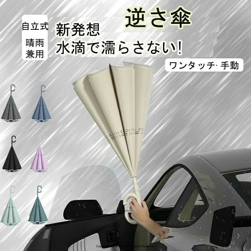 逆さ傘 ワンタッチ/手動 晴雨兼用 自立式 2重構造 7カラー UVカ