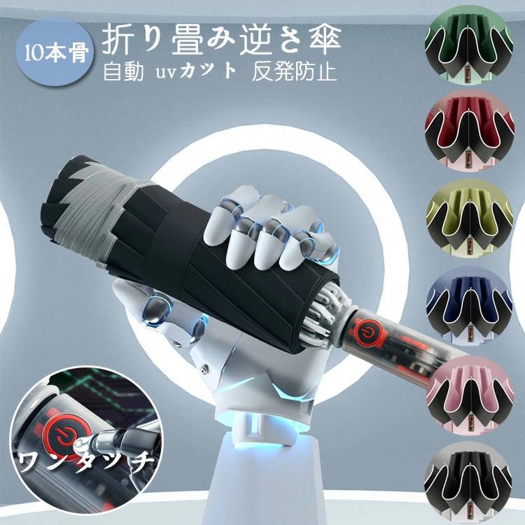 自動開閉 uvカット メンズ レディース 自動開閉 遮 軽量 10本骨 メンズ 折り畳み傘 逆折り ・・・