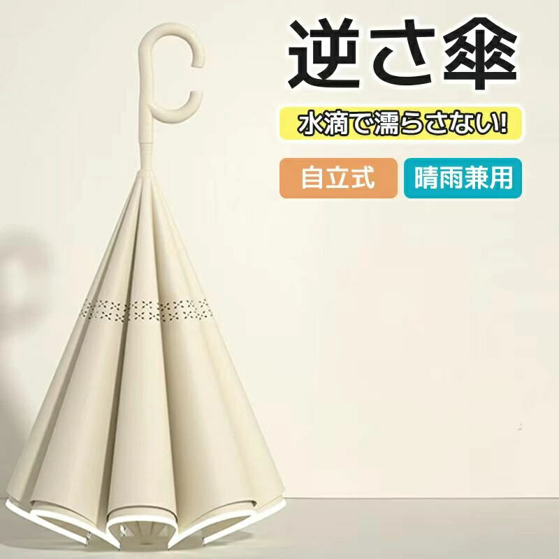 逆さ傘 長傘 二重傘 ワンタッチ 反射テープ C型 持ち運びやすい