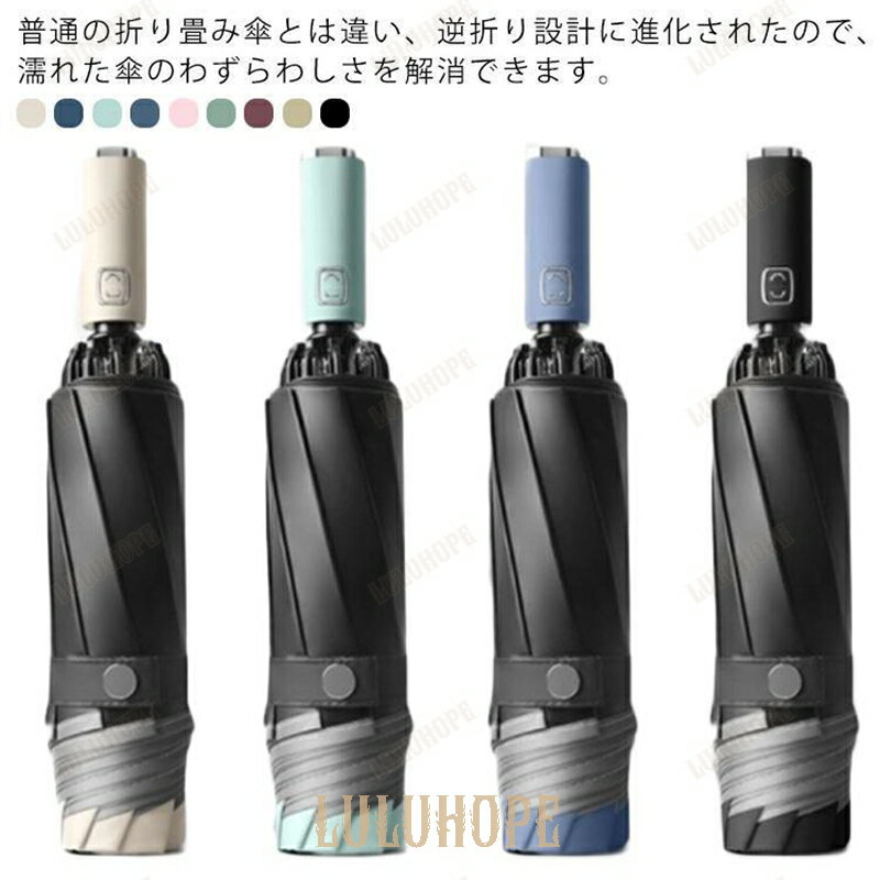 『SNS人気話題』折りたたみ傘 逆折りタイプ 2タイプ5カラー 逆さ傘 ワンタッチ 自動開閉 晴雨兼・・・