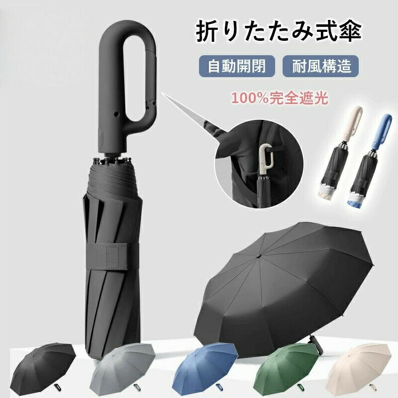 折りたたみ傘 逆さ傘 自動開閉 日傘 晴雨兼用 カラビナハンドル 折り畳み傘 軽い UVカット 紫外線対策 メ大きめ ワンタッチ 撥水 耐風 プレゼント