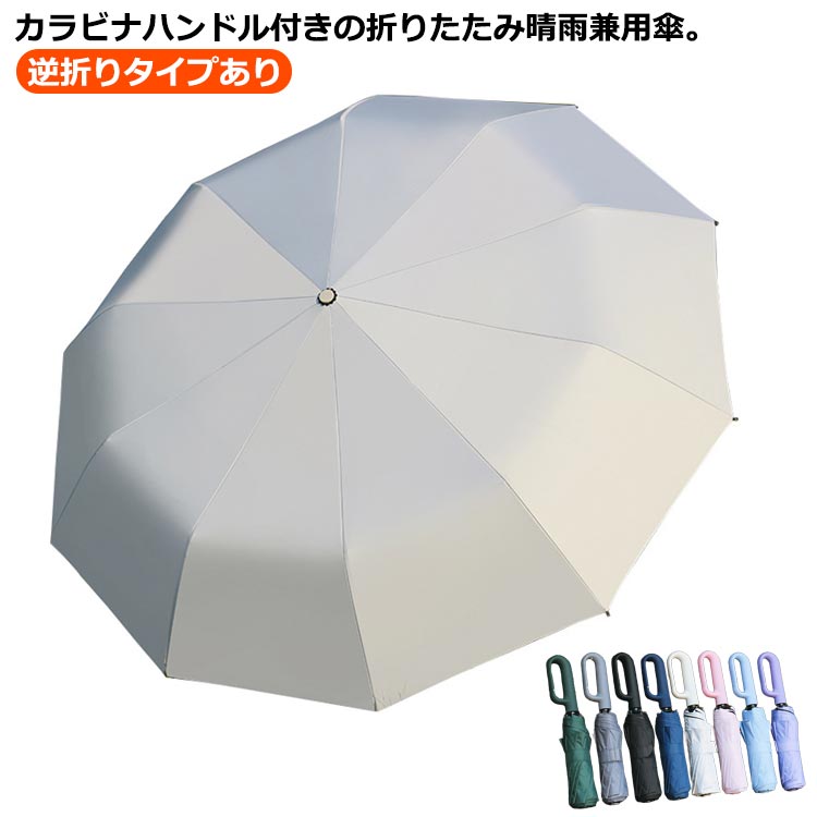 傘 自動開閉 逆さ傘 晴雨兼用カラビナハンドル 折り畳み傘 軽い UVカットUPF50 紫外線遮断 メンズ レディース 軽量 大きめ ワンタッチ