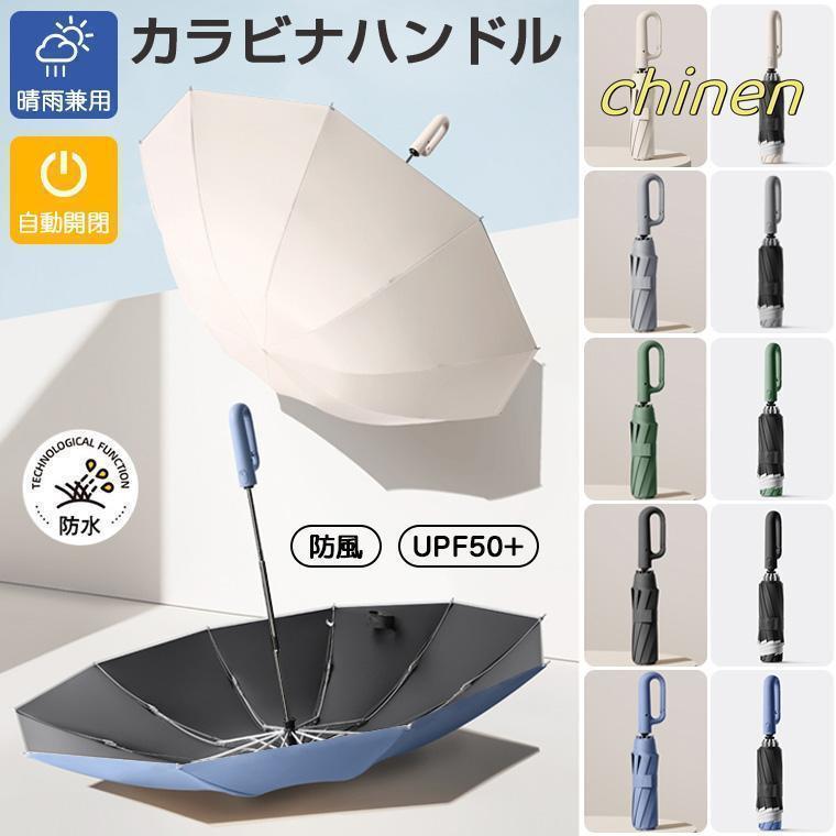 傘 自動開閉 逆さ傘 晴雨兼用カラビナハンドル 折り畳み傘 軽い UVカットUPF50 紫外線遮断 メンズ レディース 大きめ ワンタッチ