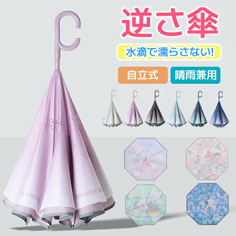 逆さ傘 長傘 雨傘 晴雨兼用 自立式 手動 2重構造 UVカット 花柄 紫外線遮断 遮熱 遮光 晴雨両用 逆開き 二重傘 逆さま傘 逆転傘 撥水 耐風