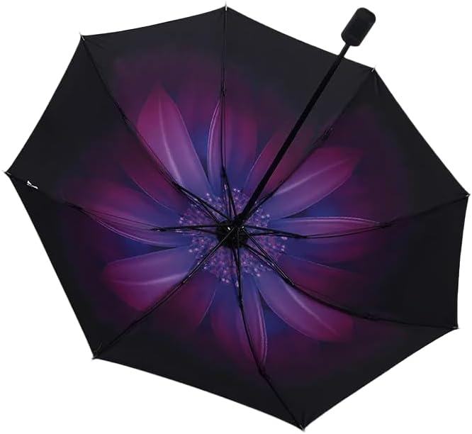 16本骨 晴雨兼用 折りたたみ傘 内面プリント/外面プリント 日傘 軽量 逆折り式傘 遮光 防風 紫・・・