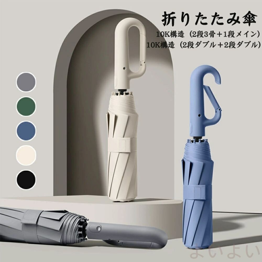 自動開閉折りたたみ傘 カラビナハンドルつき 逆折りタイプ 三段式 収納やすい ドア 鞄 ベビーカーに掛ける ママグッズ 超撥水 耐風傘 男性も女性も使いやすい