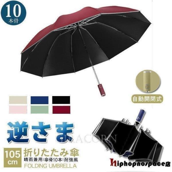 10本骨 傘 折りたたみ傘 逆さ傘 逆折り 晴雨兼用 ワンタッチ 自動開閉 シンプル ビジネス 紳士・・・