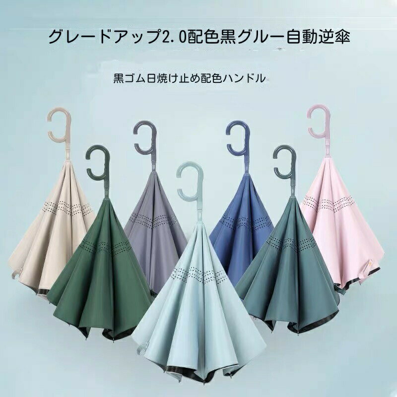 逆さ傘 ワンタッチ 自動傘 カット 紫外線遮断 遮熱 遮光 2重構造 晴雨両用 便利ハンズフリー 両・・・