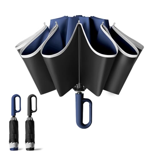 折りたたみ傘 10K 二重層防風全自動傘傘 3 つ折り商業大型耐久性フレーム 逆さ傘 レディース 軽・・・