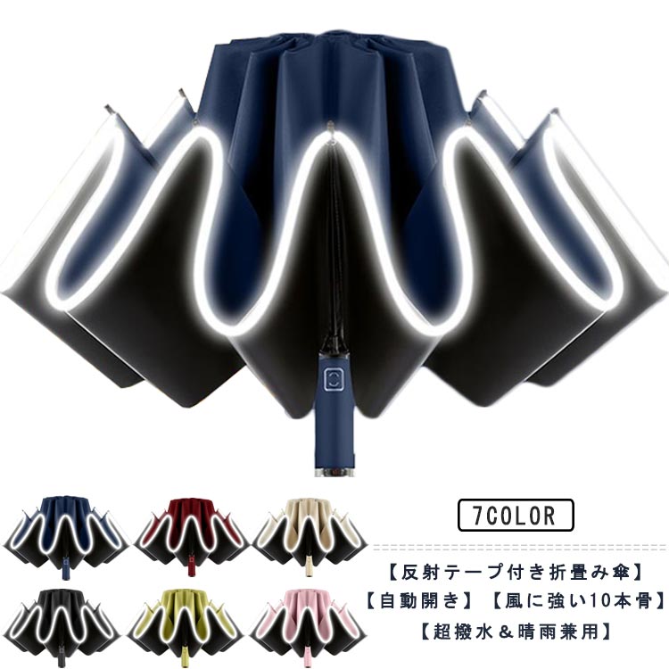 折りたたみ傘 日傘 雨傘 自動傘 逆さ傘 晴雨兼用傘 レディース メンズ 自動開閉式 暗闇で光る傘 反射テープ付き 折り畳み 折りたたみ傘(3つ折) オシャレ 可愛い 女性用 10本骨 UVカット