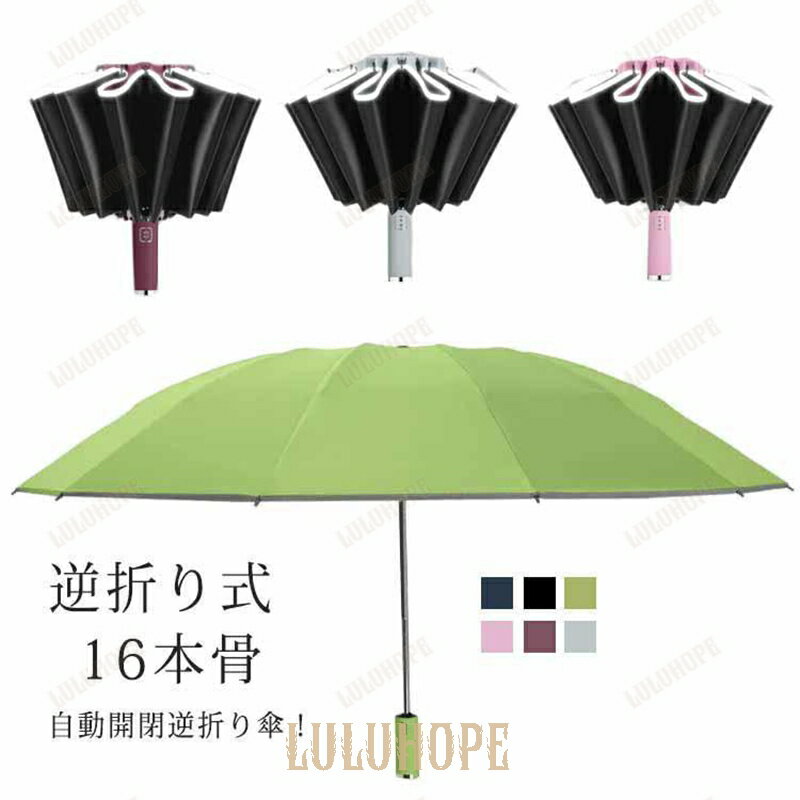 折りたたみ傘 逆折り式 16本骨 晴雨兼用 完全遮光 日傘 ワンタッチ 自動開閉 逆さ傘 反射テープ 雨傘 ビッグサイズ 強靭傘 耐風 超撥水 UV