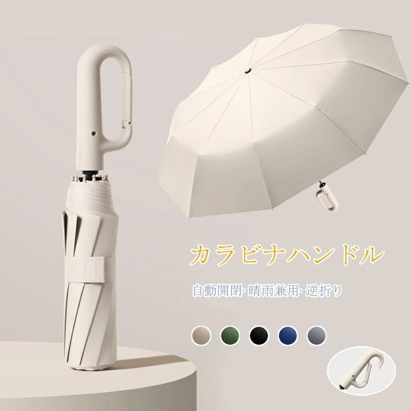 自動開閉 折りたたみ 傘 逆さ カラビナハンドルつき 逆折りタイプ 収納やすい ドア 鞄 ベビーカーに掛ける ママグッズ 超撥水 耐風傘 男性も女性も使いやすい