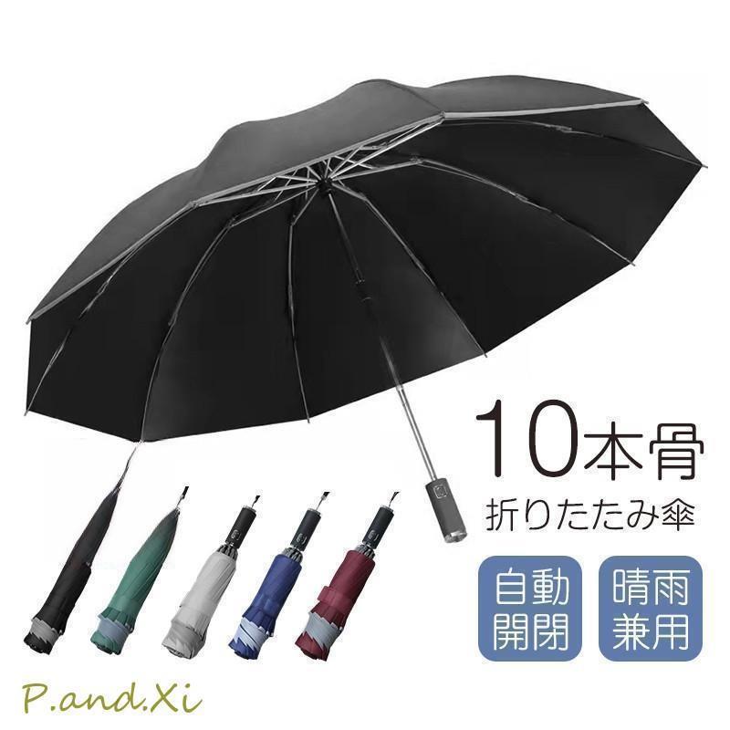 折りたたみ傘 自動開閉 メンズ 雨傘 日傘 10本骨 逆さ傘 大きめ ワンタッチ 撥水 耐風 反射テ・・・