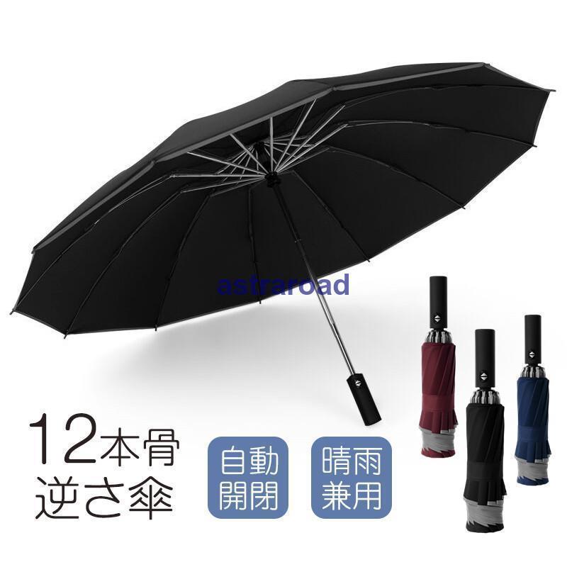 折りたたみ傘 自動開閉 メンズ 雨傘 日傘 12本骨 逆さ傘 大きめ ワンタッチ 撥水 耐風 反射テ・・・