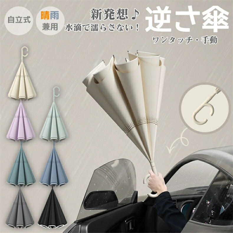 【逆さ傘】【ワンタッチ/手動 晴雨兼用 自立式 2重構造 6カラー】 UVカット 紫外線遮断 遮熱 ・・・