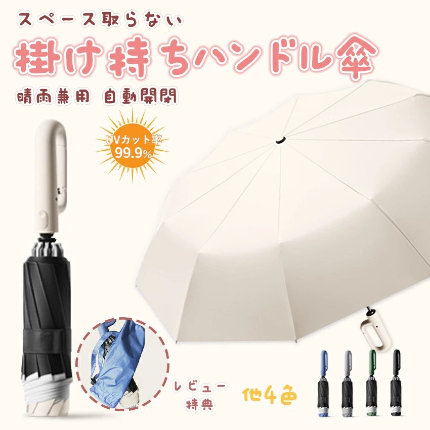 自動傘 掛け持ち 持ち便利 フック 逆さ傘 晴雨兼用 カラビナハンドル 持ち手 折り畳み傘 軽い U・・・