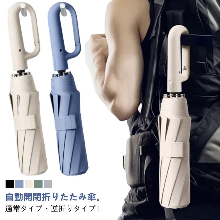 自動開閉 逆さ傘 晴雨兼用カラビナハンドル 折り畳み傘 軽い UVカットUPF50 紫外線遮断 メンズ レディース 軽量 大きめ ワンタッチ