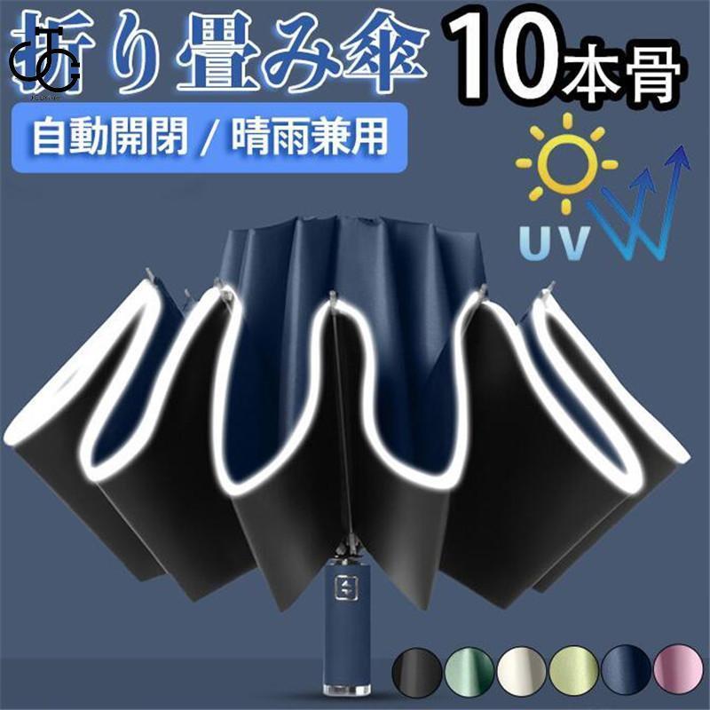 折りたたみ傘 【逆折り式 リングバックル付き】逆さ傘 ワンタッチ 自動開閉 高強度10本双骨 反射テープ付き 超撥水 メンズ傘 耐風 ビッグサイズ おりたたみ傘 台