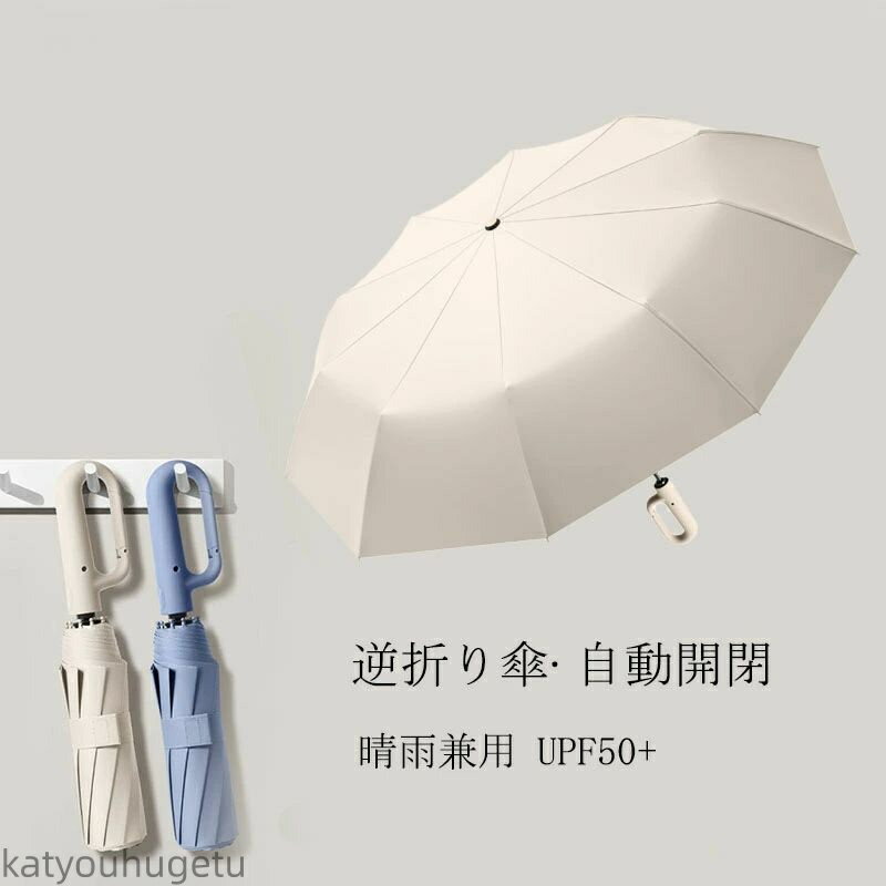 ワンタッチ折りたたみ傘 逆折りタイプ 自動開閉 逆さ傘 晴雨兼用 カラビナハンドル 折り畳み傘 軽い UVカット UPF50 紫外線遮断 メンズ レディース 軽量 大きめ ワンタッチ おりたたみ傘