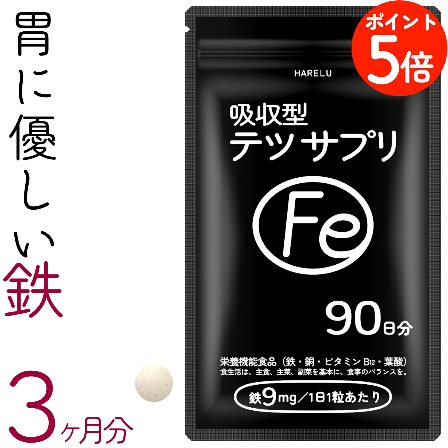 \ポイント5倍 18日限定/鉄 サプリ 90日分 吸収率 鉄分 サプリメント 葉酸 ビタミンB12 ・・・