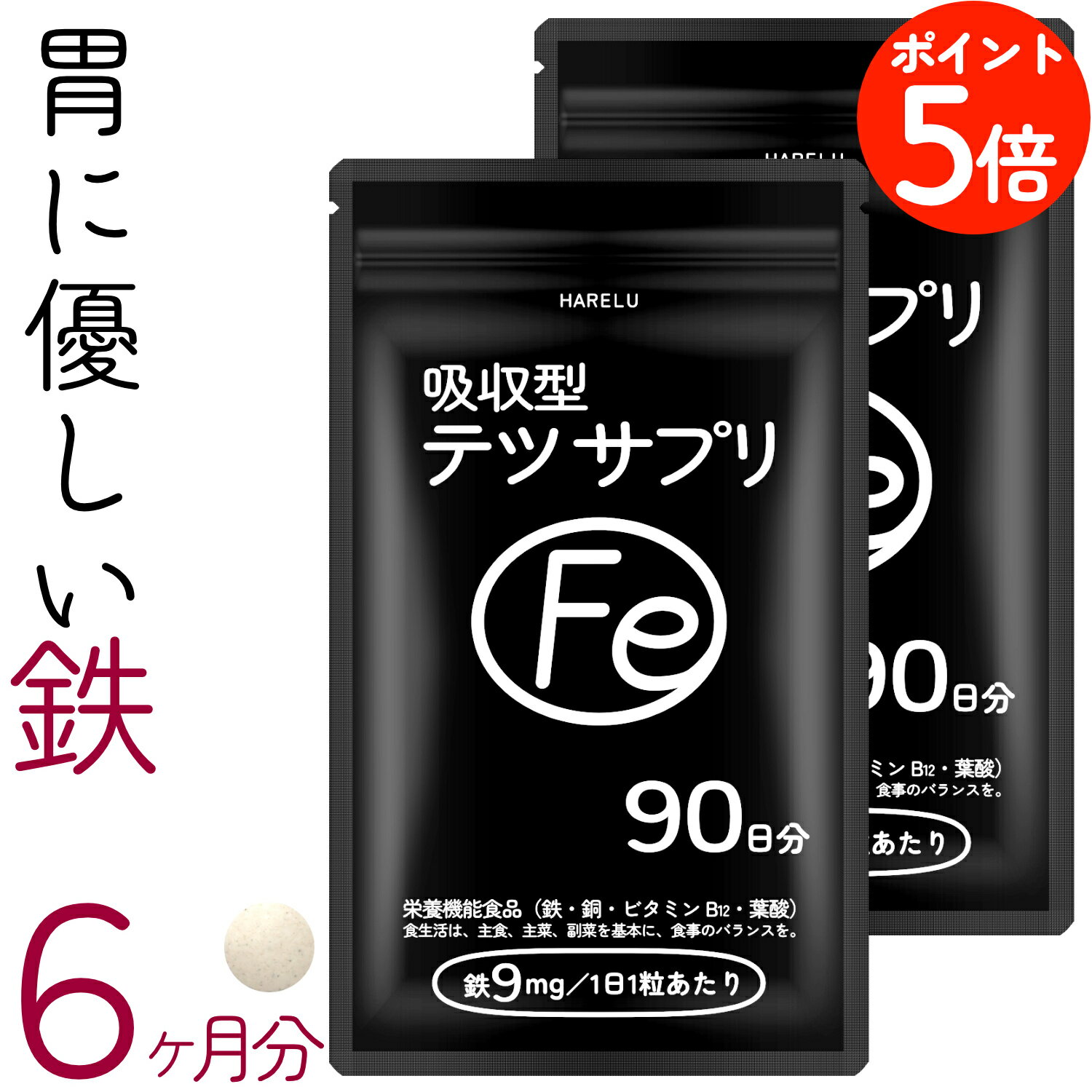\ポイント5倍 18日限定/鉄 サプリ 90日分×2袋 吸収率 鉄分 サプリメント 葉酸 ビタミンB・・・