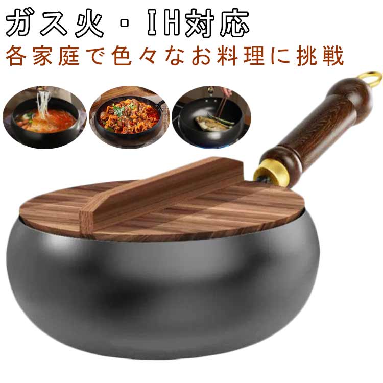 鍋 フライパン 鉄鍋 中華鍋 片手鉄鍋 焦げ付かない 洗いやすい 伝統鉄鍋 電磁調理器対応 IH調理可 木蓋付き