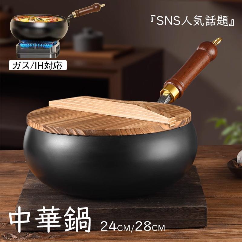 『SNS人気話題』鉄製中華鍋 24cm 26cm 28cm 電磁調理器対応 IH