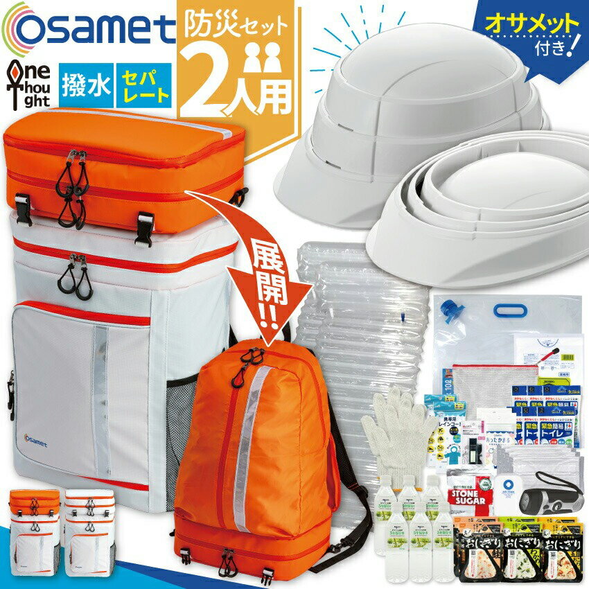 2人用 防災リュック【osamet付】 ワンソート(オレンジ/白)防災リュックサック 災害リュック ・・・