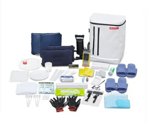 停電、断水、避難所生活などあらゆる場面を想定した万能タイプの防災セットに加え、ファーストエイドキットも付いたワンランク上の防災セット