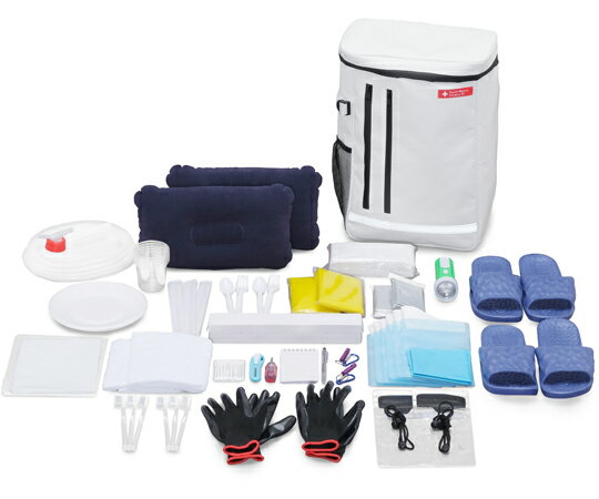 女性でも背負いやすい軽量設計。止水ファスナー・撥水素材で水にも強い。災害時に役立つ防災グッズをひとまとめにした2人用防災セット。