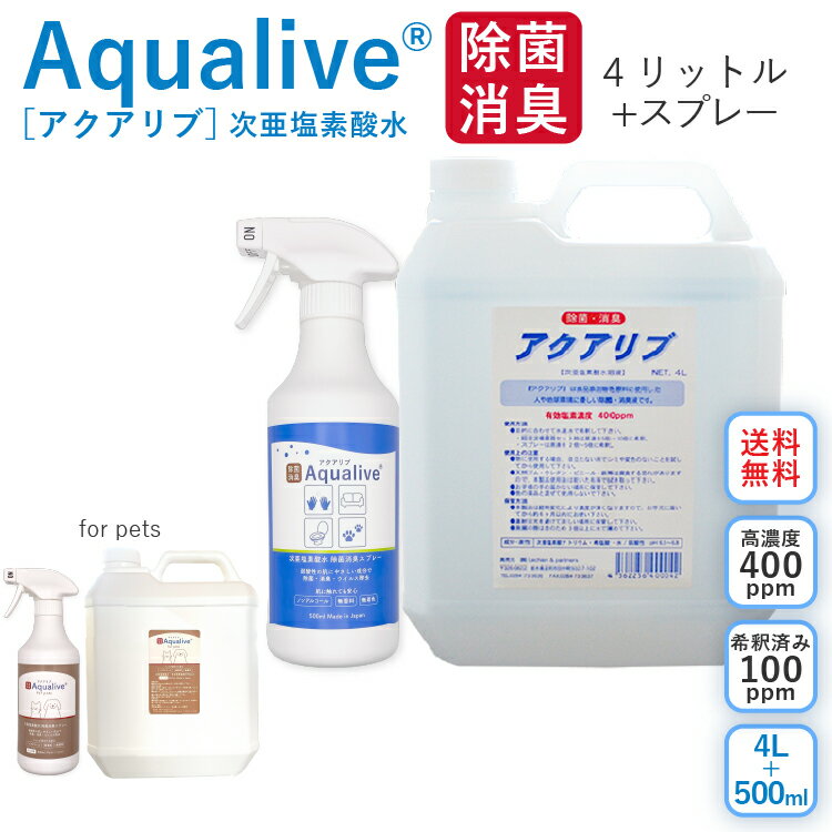アクアリブ (400ppm) 原液 4リットル 送料無料 ノンアルコール 真菌 猫カビ 花粉対策 新・・・ 有機物に触れると真水に戻るからペットや赤ちゃんにも安心♪希釈して使うからお値段リーズナブル!リピート率70%以上 レビュー評価4.6以上! 5500 円 レビュー345件 平均評価4.77 ショップ名 自然の森 |