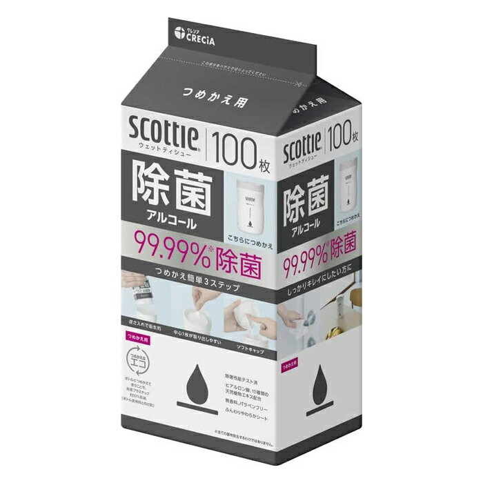 [日本製紙クレシア]スコッティ ウェットティシュー 除菌 アルコール つめかえ用 100枚(詰換用 ・・・