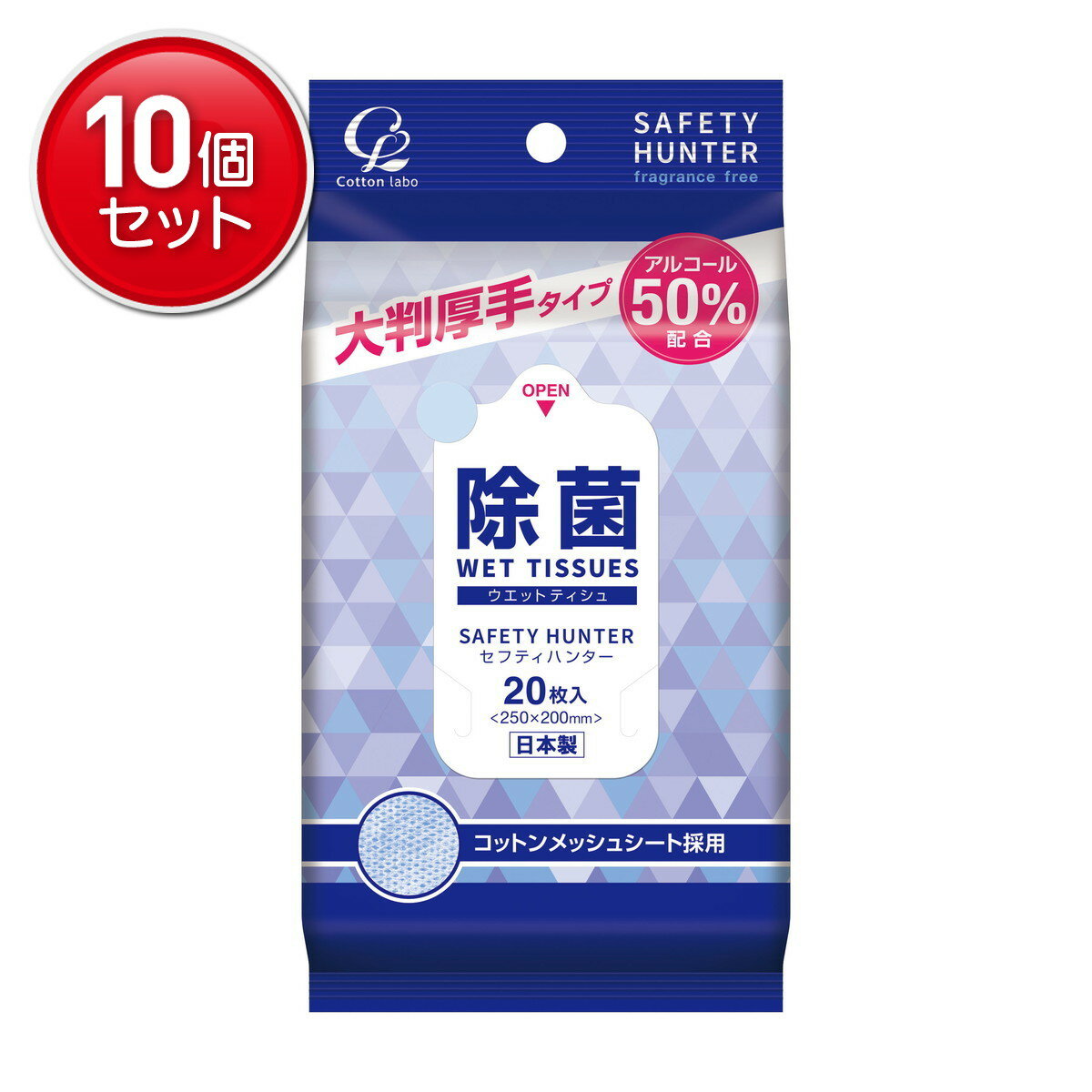 【最安挑戦!まとめ買い×10点セット】コットン・ラボ セフティハンター 厚手 大判 20枚 無香料 ・・・