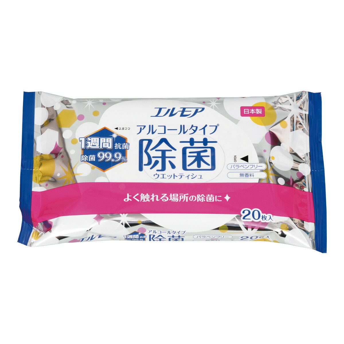 【配送おまかせ】カミ商事 エルモア 除菌99.9% アルコールタイプ ウエットティッシュ 20枚入 ・・・