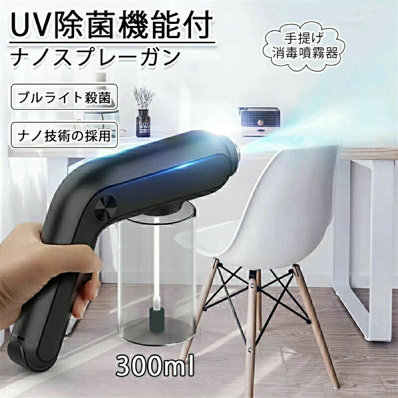 ナノスプレーガン スプレーガン コードレス アルコールスプレー噴霧器 充電式 軽量 霧吹き アルコール対応 ブルーライト殺菌 ナノ技術採用 紫外線殺菌で安全 遠射程 噴水量調整可能