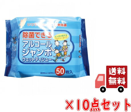 アルコールジャンボウェットティシュ 50枚入 大判サイズ アルコールウェットティッシュ 手軽にいつもきれいに除菌できる。(ウエットティシュー アルコール除菌ティッシュ)