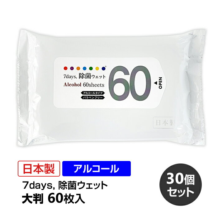 7days,除菌ウェット アルコールタイプ 大判60枚入 30個セット(1c/s)(KZW1121)・・・