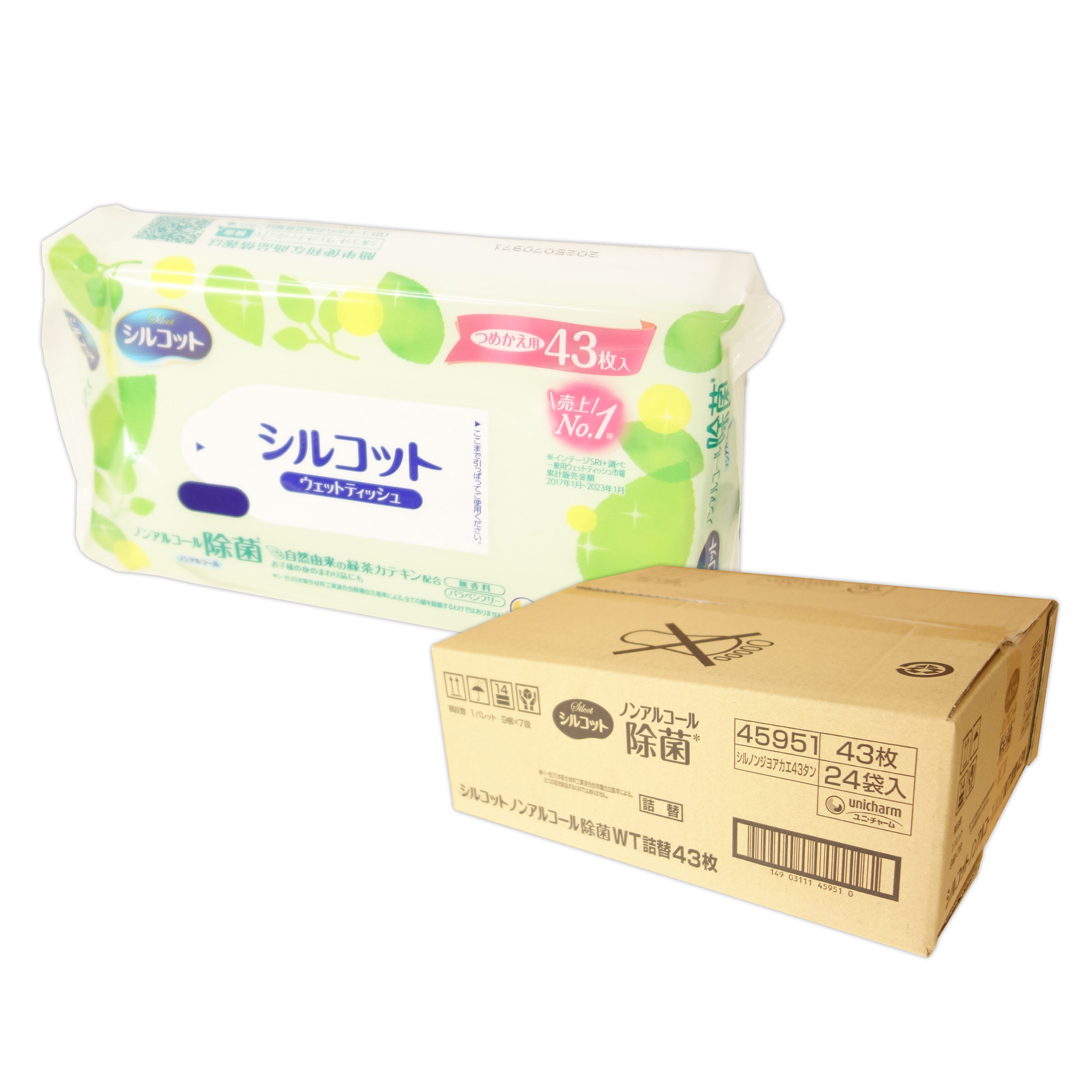 シルコット 除菌 ウェットティッシュ ノンアルコールタイプ つめかえ用 43枚 × 24個 【ユニ・・・・