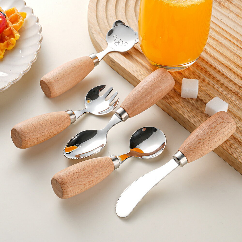 【7点セット2646】立てておける 木柄 子供用 304ステンレス 離乳食 スプーン フォーク ナイ・・・