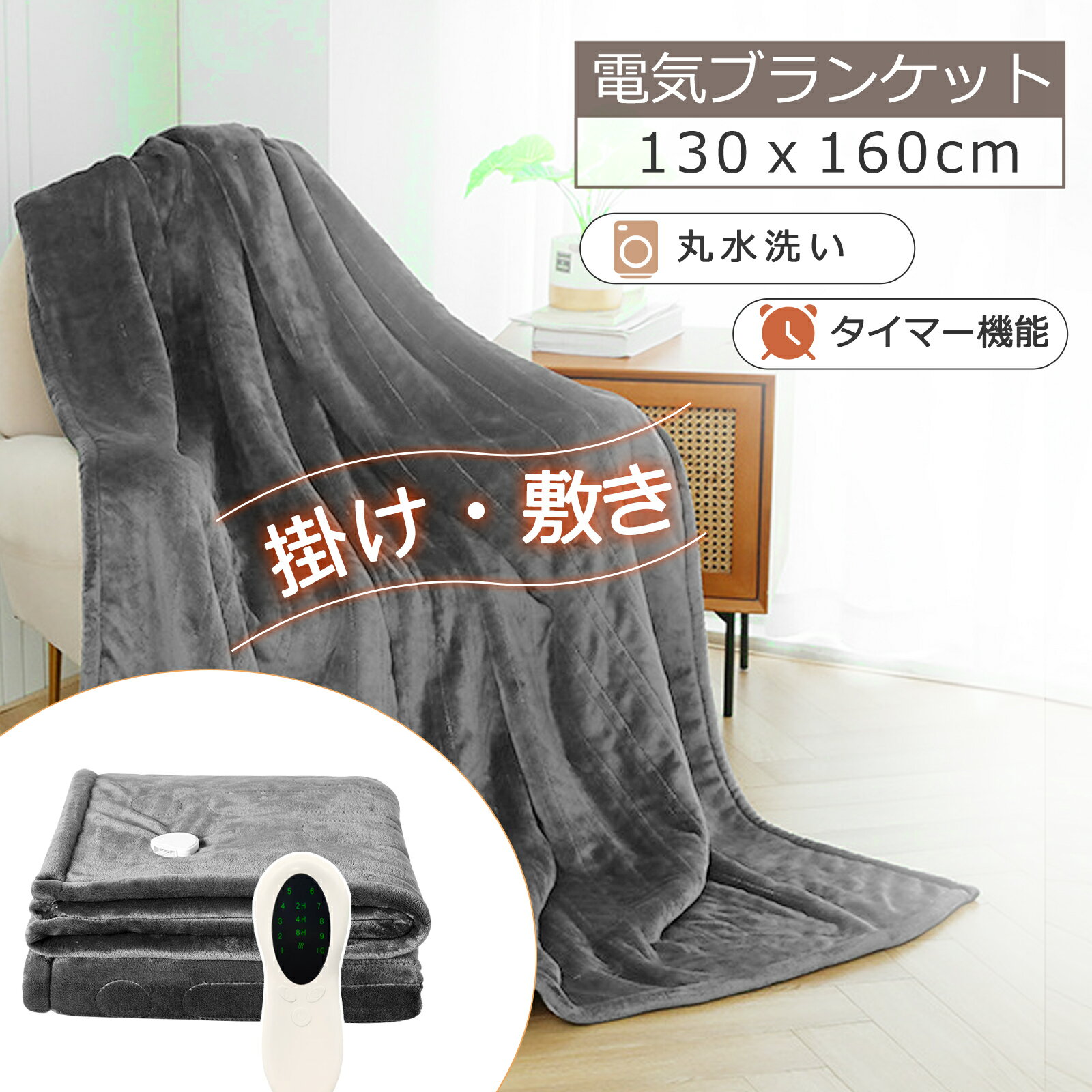 電気毛布 掛け敷き 掛け毛布 ひざ掛け 洗える 敷物 160*130cm 8時間 タイマー付き 10・・・