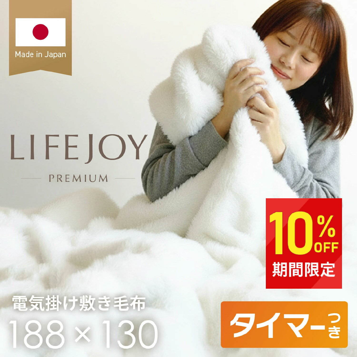 【日本製】自動ON/OFFタイマー付 電気毛布 掛け敷き ふわふわ ラビットファー 188cm×13・・・