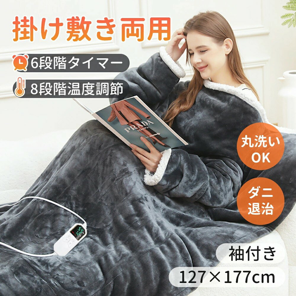 電気毛布 パーソナル暖房 127 × 177cm 袖付き 毛布 掛け敷き 洗える 6段階タイマー 8・・・