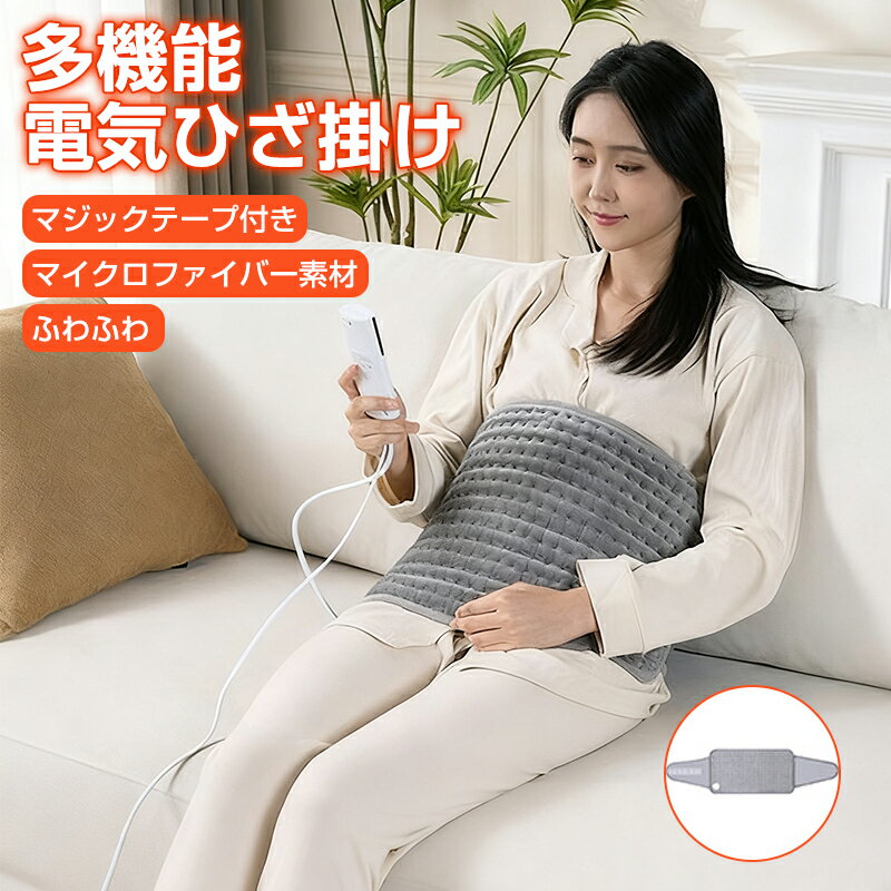 多機能 電気ひざ掛け マジックテープ付き マイクロファイバー素材 ふわふわ 電熱毛布 掛け敷き兼用 ・・・